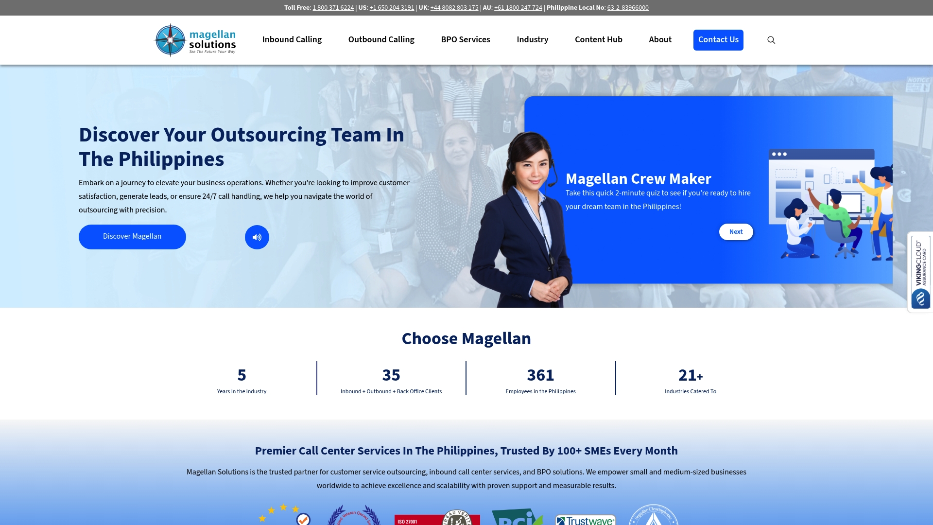 Magellan Solutions is a Philippines based BPO that offers call center and industry specific outsourcing with a clear emphasis on cost savings and 24/7 operations. The platform suits companies that need multilingual support and strong compliance coverage.