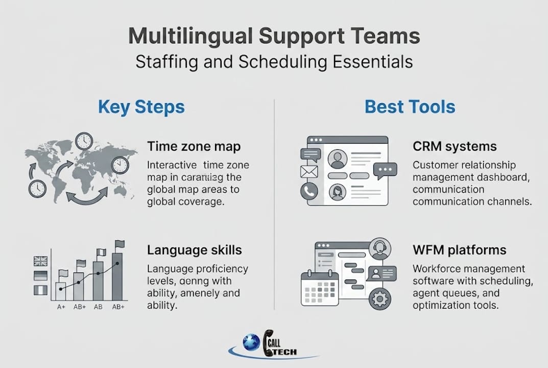 The tools that matter most are CRM systems with language-tagging capabilities, workforce management platforms that let you filter scheduling data by language and shift, and quality assurance dashboards that surface per-language metrics. Platforms like Zendesk, Freshdesk, and Salesforce Service Cloud all support this level of segmentation when configured properly. To get the most from these tools, it helps to optimize your contact center workflow before adding multilingual layers on top.